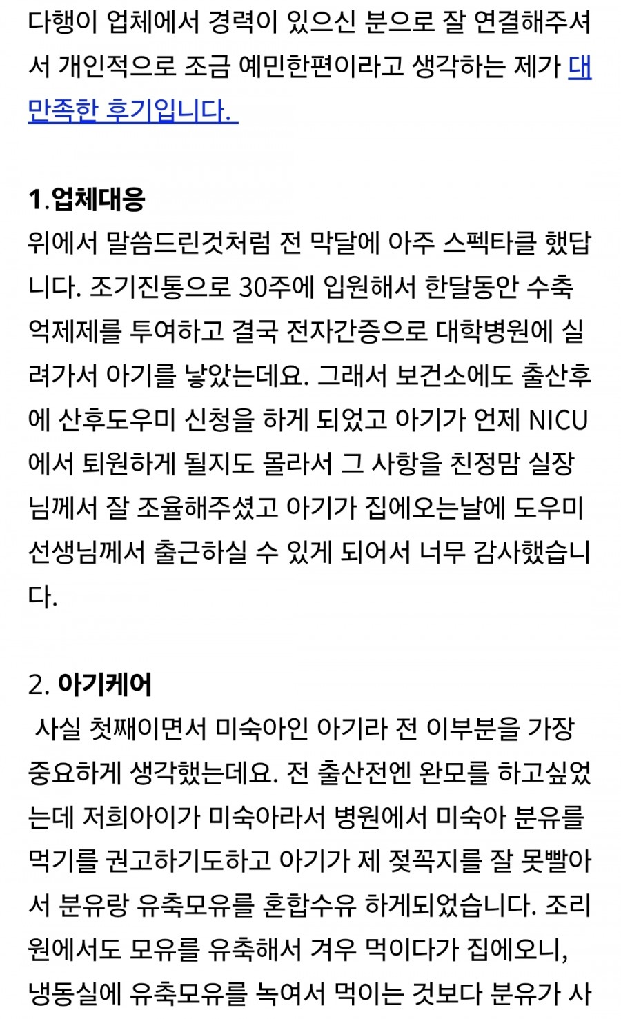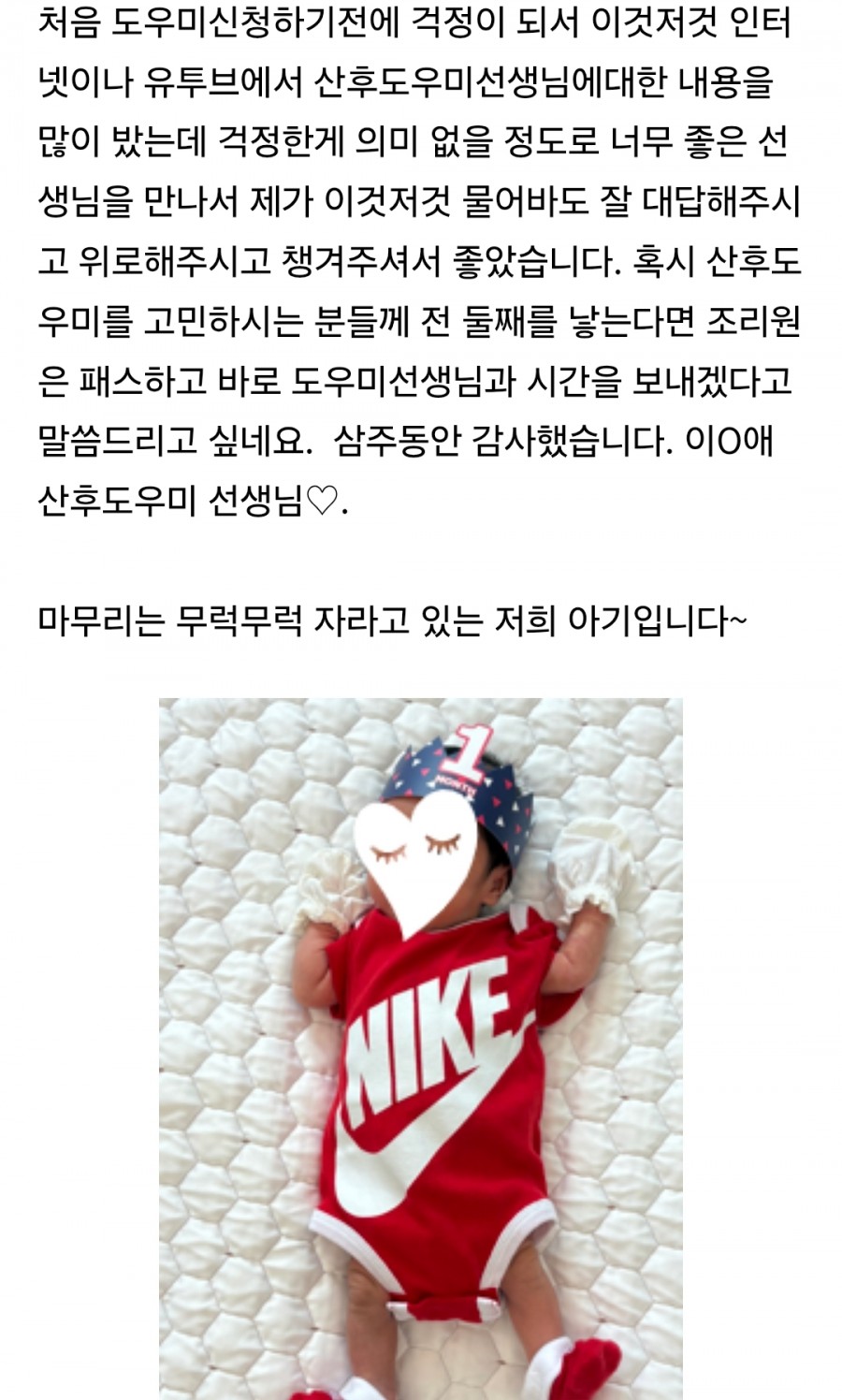 대만족한 평택 산후도우미 친정맘 후기