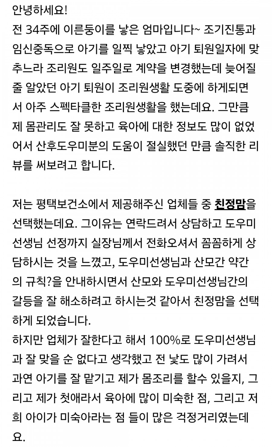 평택 산후도우미 찐후기