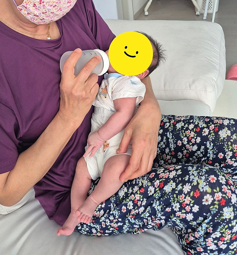 모유수유하면서 일 1회 보충수유 하는중인데 애기 얼굴 가릴 수 밖에 없지만 선생님이 먹여주시면 정말 편안한 표정으로 120ml 뚝딱합니댜...ㅎㅎㅎㅎㅎ