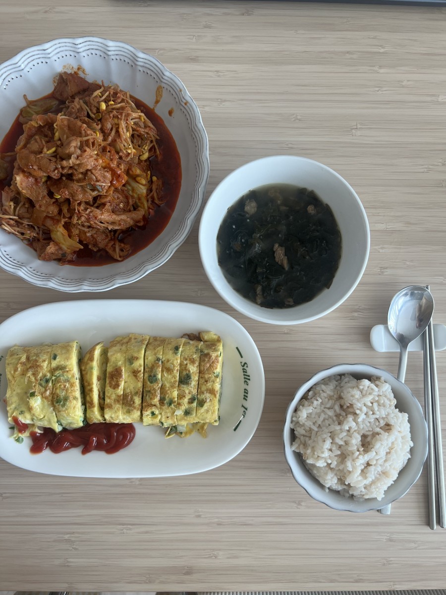 콩나물불고기, 양배추삼겹살볶음, 들깨미역국