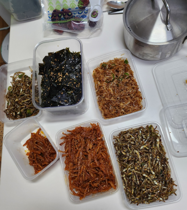 밑에 사진은 이모님이 종료 이틀전에 만들어주신 밑반찬들이에요~같이올려봅니다^^