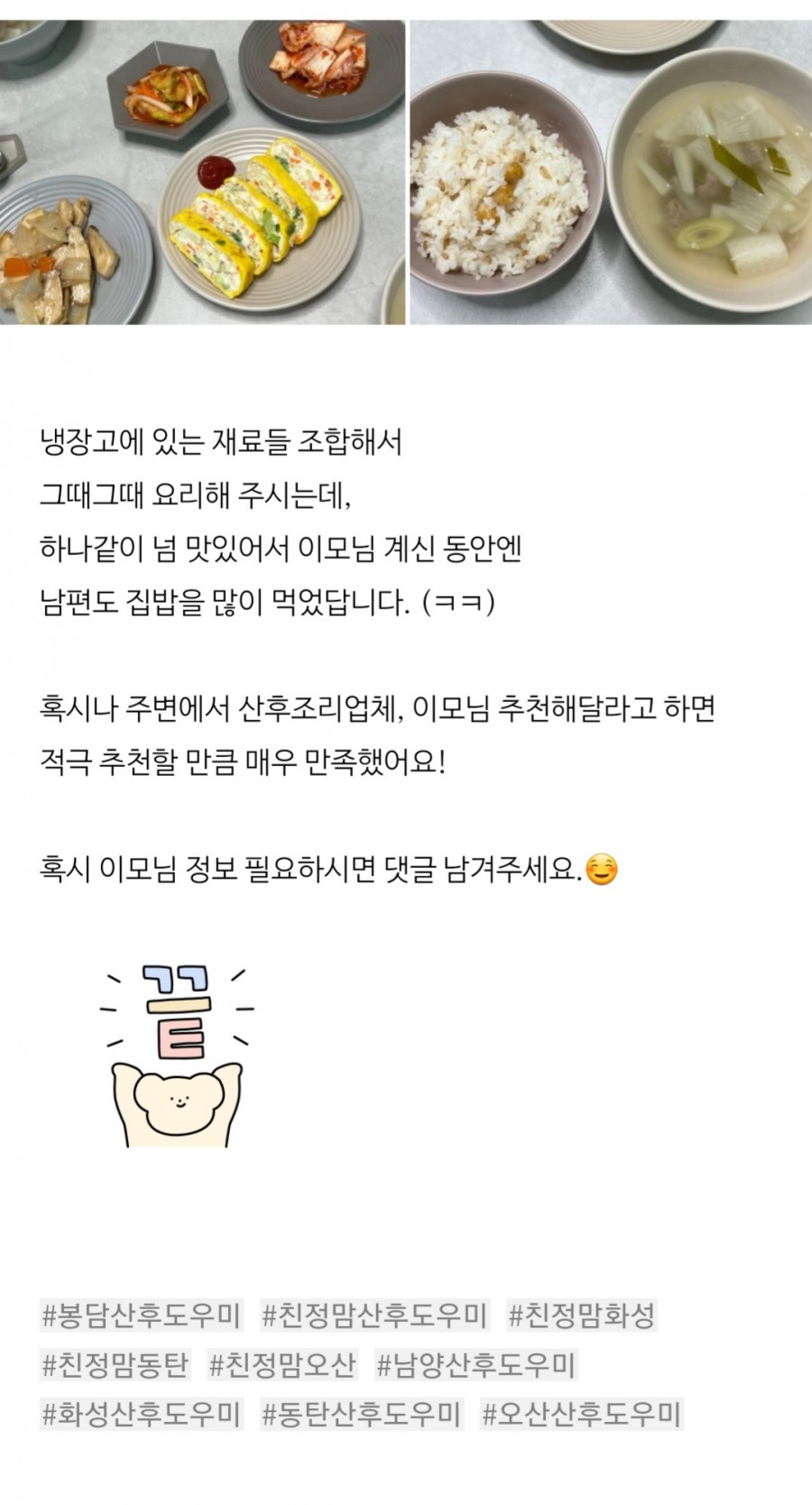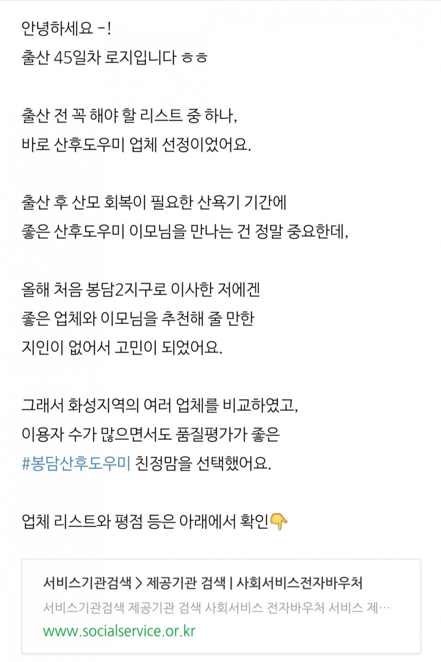 봉담2지구 산후도우미업체 친정맘 솔직후기