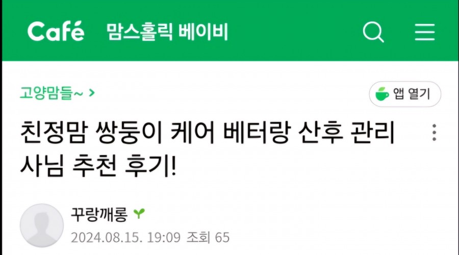 결국 조리원 1주 남겨놓은 시점에서 급하게 알아 본 곳은 '친정맘' 이었어요. 워낙 급하게 연락한지라 경력이고 뭐고 따질 것도 없이 당장 조리원 퇴소 하고 바로 와주실 분이나 게실까 알 수 없는 상황이었죠.다행히 저희가 만난 산후 관리사님은 여러 걱정이 무색하게 너무 잘 해주셔서 4월부터 현재 8월 지금까지도 함께 해 주시고 계세요.