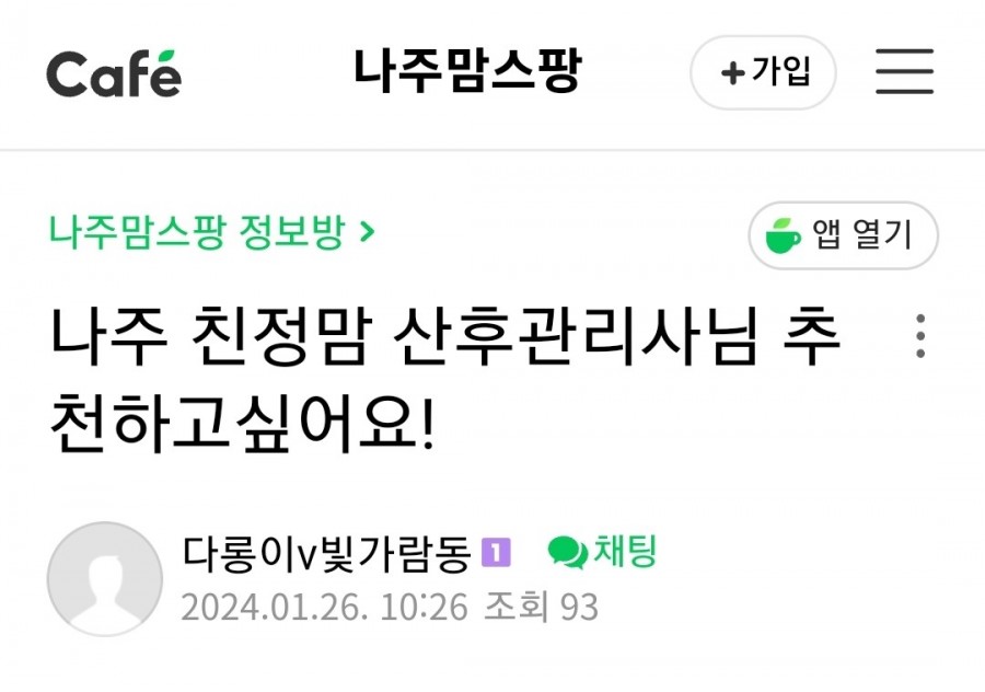 1월에 나주 카페에 올라온 김영분 관리사님 후기입니다