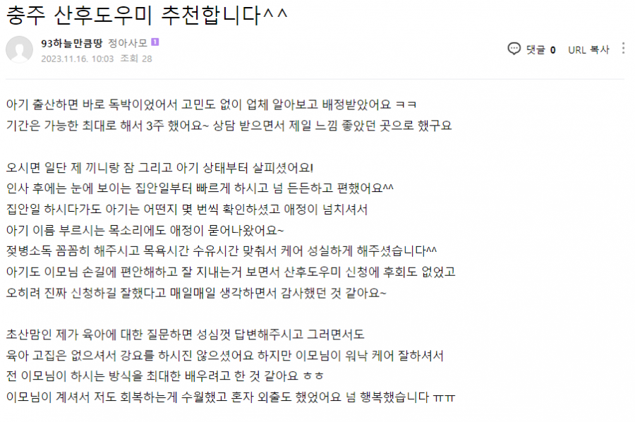 이전글 목록 다음글 수정 삭제 글쓰기 충주산후도우미 추천합니다. 충주 산후도우미 칭찬합니다. 관리자의 댓글 산모님 감사합니다. 어떤 산모님 이신지 알겠네요~^^ 아기 건강하고 예쁘게 잘 키우시고 행복한 가정 되세요~ 감사합니다 산모님 감사합니다. 어떤 산모님 이신지 알겠네요~^^ 아기 건강하고 예쁘게 잘 키우시고 행복한 가정 되세요~ 감사합니다