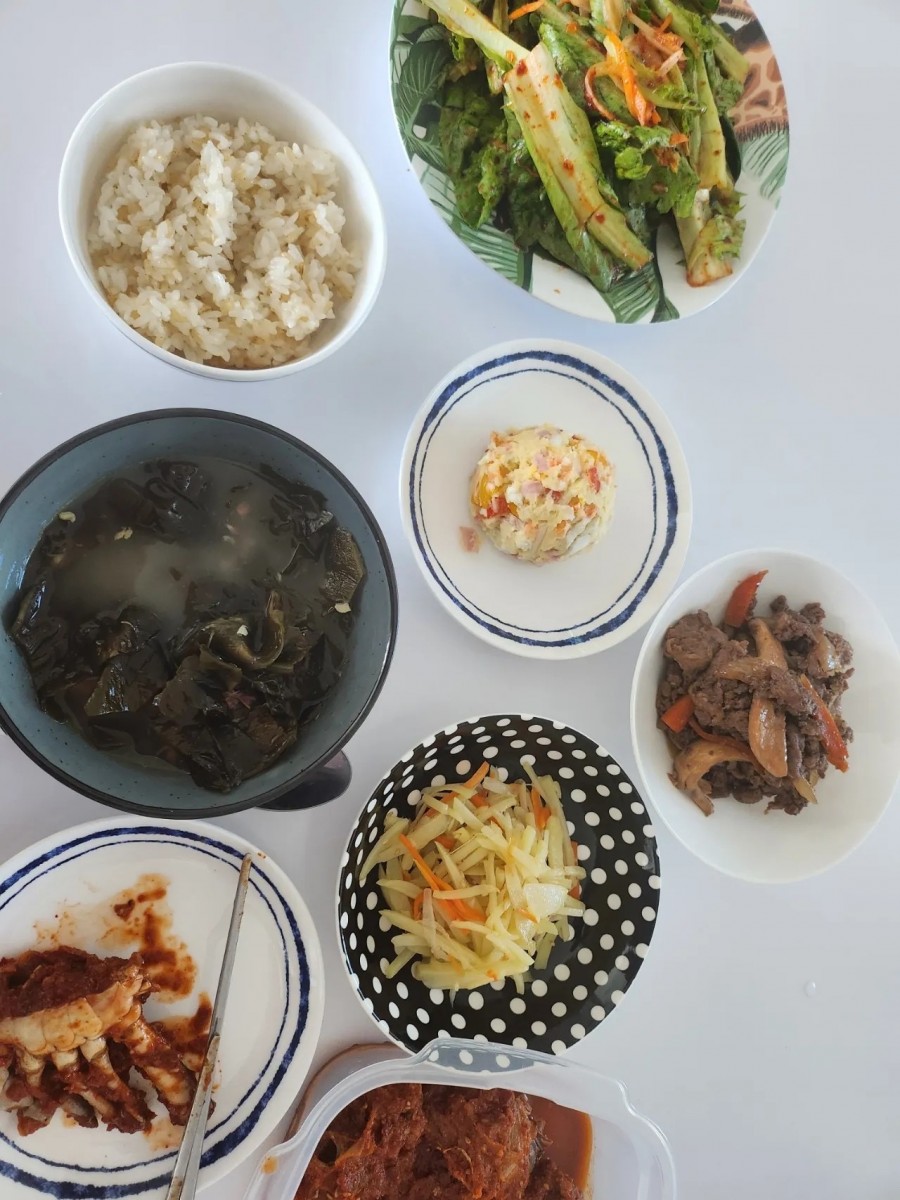 ③ 식사: 어른 식자재까지 성심성의껏 살 기운도 정신도 없었는데 빈곤한 재료 속에서도 맜있는 거 정말 많이 해주셨습니다.