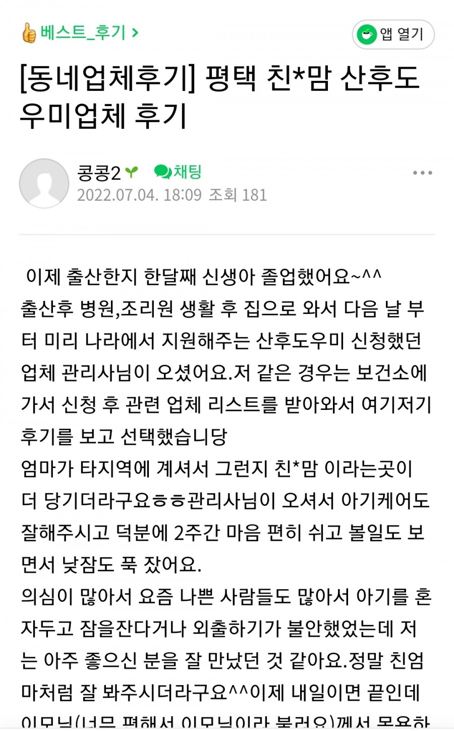 평택 친*맘 산후도우미업체 후기 : 네이버 카페