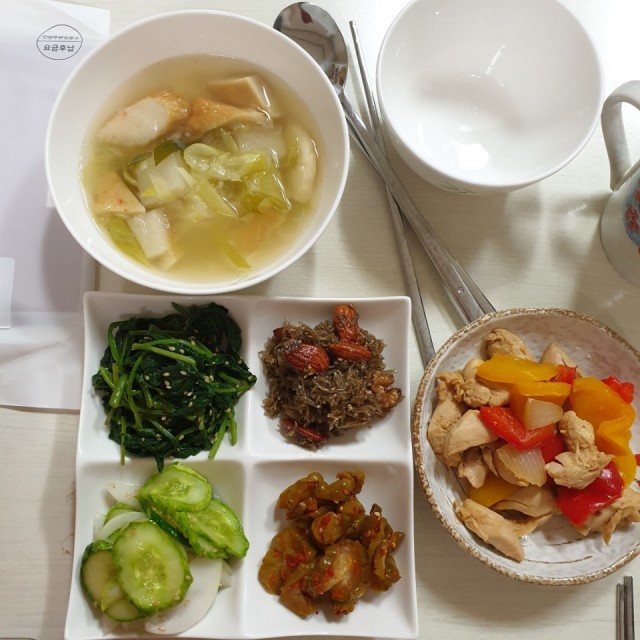 음식은 간장 베이스로 자극적이지 않고 또 최소한의 양념으로 맛을 살리는 신기한 조리법을 구사하시네요. 설명을 들으면 되게 간단한데 맛은 제가 온갖 갖은 양념 넣은 것보다 맛있으니 이모님께 자주 물어보며 노트에 적어놓았어요.