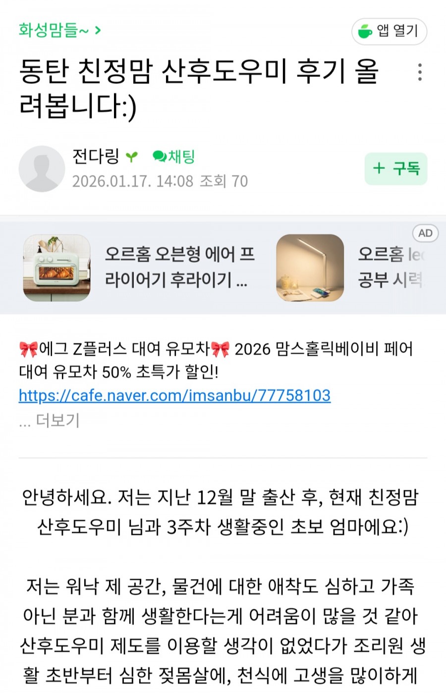 동탄산후도우미후기