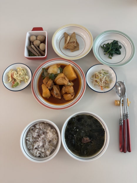 참고로 음식은 재료 준비가 되어있어야 해요. 관리사님이 이거 해줄 테니 사놓으라고 했지만 전 장을 부지런히 못 봐서 거의 같은 재료만 내내 준비해 놔서 메뉴가 크게 다양하진 못했네요.