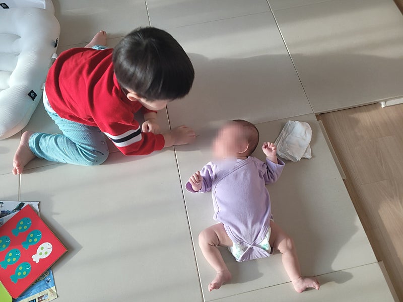 첫째랑 시간을 많이 보낼 수 있게 된 덕에 첫째도 둘째를 예뻐하며 첫 한달을 보냈어요! 그리고 아무날도 아니었는데 자동차 좋아하는 첫째를 위해 토미카를 쥐어주셨어요ㅎㅎ 손주 사주며 같이 구매했다고 하셨는데 취향저격으로 소방트럭 픽해주셔서 요새도 동생 돌봐주신 할머니로 기억하며 첫째가 그 자동차를 가지고 놀다가 문득문득 이야기해요 ㅎㅎ